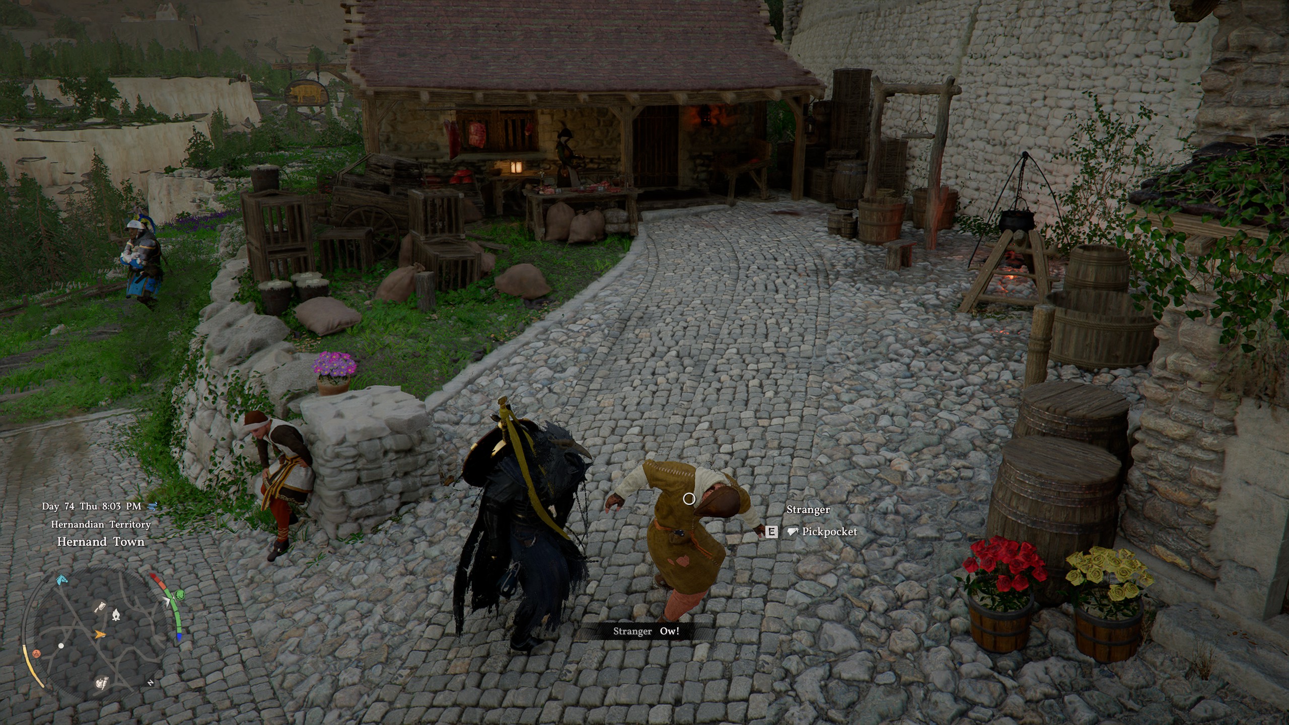 Once you have a mask, you simply have to bump into someone to pickpocket them. When you do, you’ll spot a little prompt that appears, either E on mouse and keyboard or X on controller, which lets you quickly pilfer an item from them. This is random, so you’ll often end up with somewhat useless stuff, but you’ll get better loot if you pickpocket nobles. You can even pickpocket gold bars from them, so it can be lucrative, RNG willing. You can find a load of nobles around the bank in Hernand, or at the various manors in the city limits, so be sure to try your luck.
